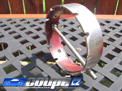 z kufru, pak ale je matice, pokud ti půjde povolit máš kliku, když nee tak sem jí já pomáhal dřevěnym hranolem a malym kladívkem, je pevná a chvíli se rozčiluješ ale jde to nakonec dobře